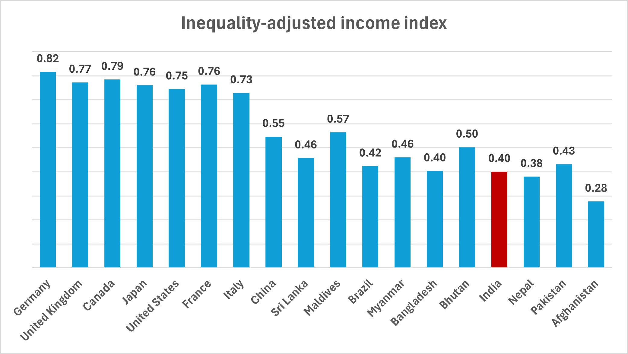 Only Nepal and Afghanistan trail India among neighbours in the inequality-adjusted income index.