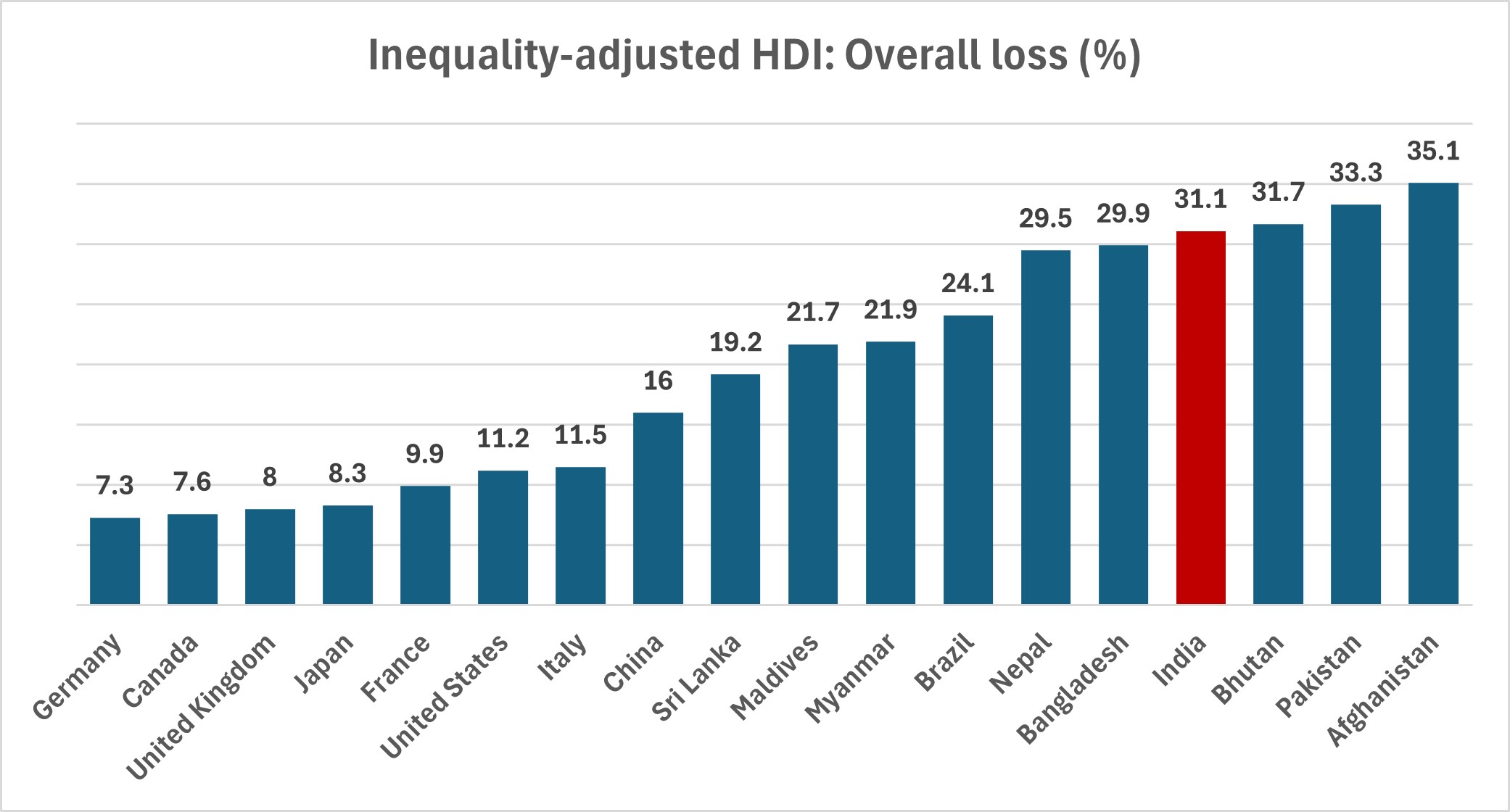 In India, inequality has a significant impact on human development when compared to the largest economies. Its position among neighboring countries is also not enviable.