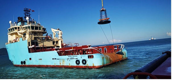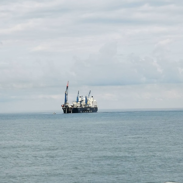 കടലിന്നടിയിൽ പൈപ്പ് ഇടുവാൻ ഉപയോഗിക്കുന്ന ‘Pipe Laying Barge’ നിറയെ പൈപ്പ് ലോഡ് ചെയ്ത് കരയുടെ ഏകദേശം മുക്കാൽ കിലോമീറ്റർ അടുത്തുവരെ എത്തുന്നു (ബാർജിന്റെ അടിഭാഗം നിലത്തുമുട്ടാതെ സുരക്ഷിതമാവുന്ന ദൂരം).