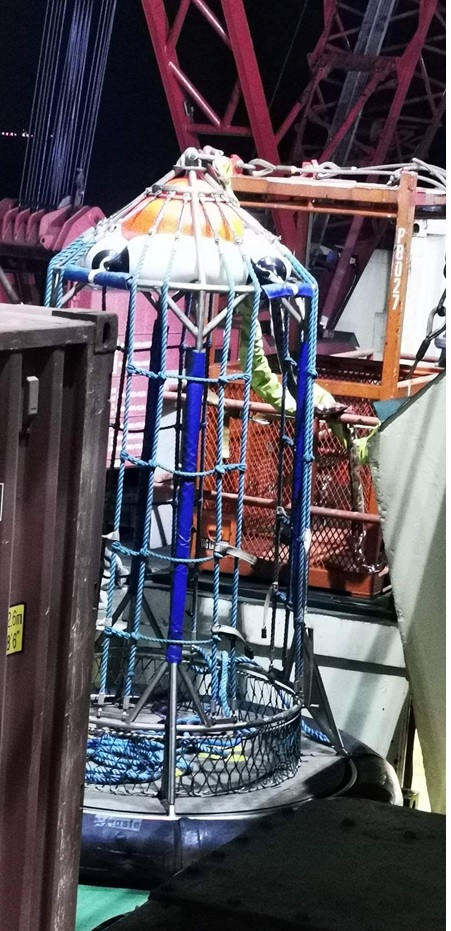 ഈ ഫോട്ടോയിലുള്ളത് കിളിക്കൂടല്ല, ഇതൊരു മനുഷ്യകൂടാണ്. ഷിപ്പിൽ നിന്ന് ഷിപ്പിലേക്കോ കരയിലേക്കോ, അതുപോലെ തിരിച്ചും ആളുകളെ ഇറക്കുവാനുള്ള കൂട്. നമ്മൾ അതിൽ പിടിച്ചു നിൽക്കണം. ക്രെയിൻ ഈ മനുഷ്യ കൂട് പൊക്കിയെടുത്ത് അപ്പുറം വച്ചുകൊള്ളും. അപ്പുറം ചാടിക്കടക്കാൻ കാര്യങ്ങൾ ഇത്രത്തോളം സിംപിളാണ്.
