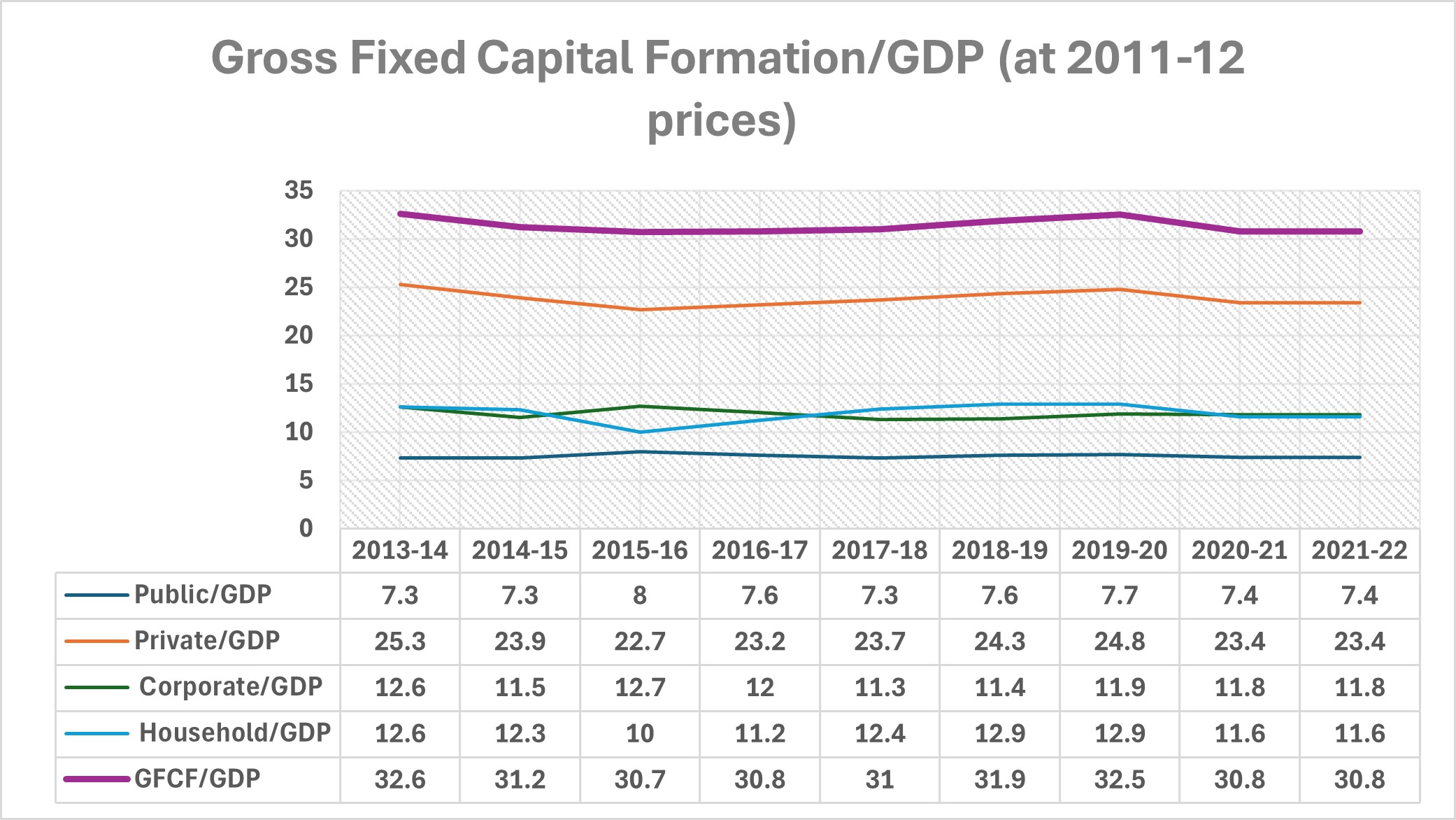 As shown in the chart and data below, the investment rate, Gross Fixed Capital Formation (GFCF), has not increased since 2014.