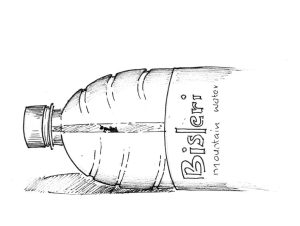 അവൾ വെള്ളക്കുപ്പി ചെരിച്ച് അല്പം വെള്ളം പുറത്തേക്കൊഴുക്കി.