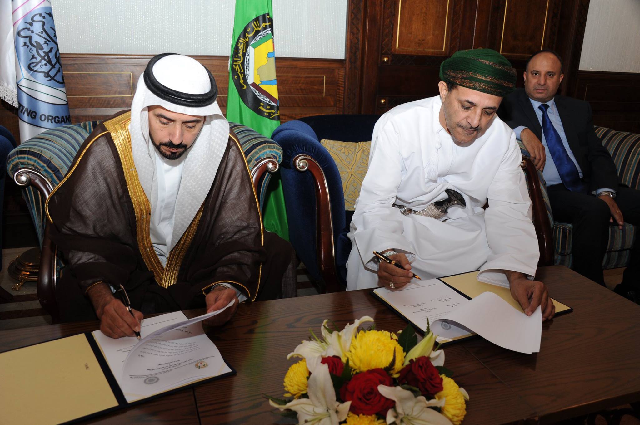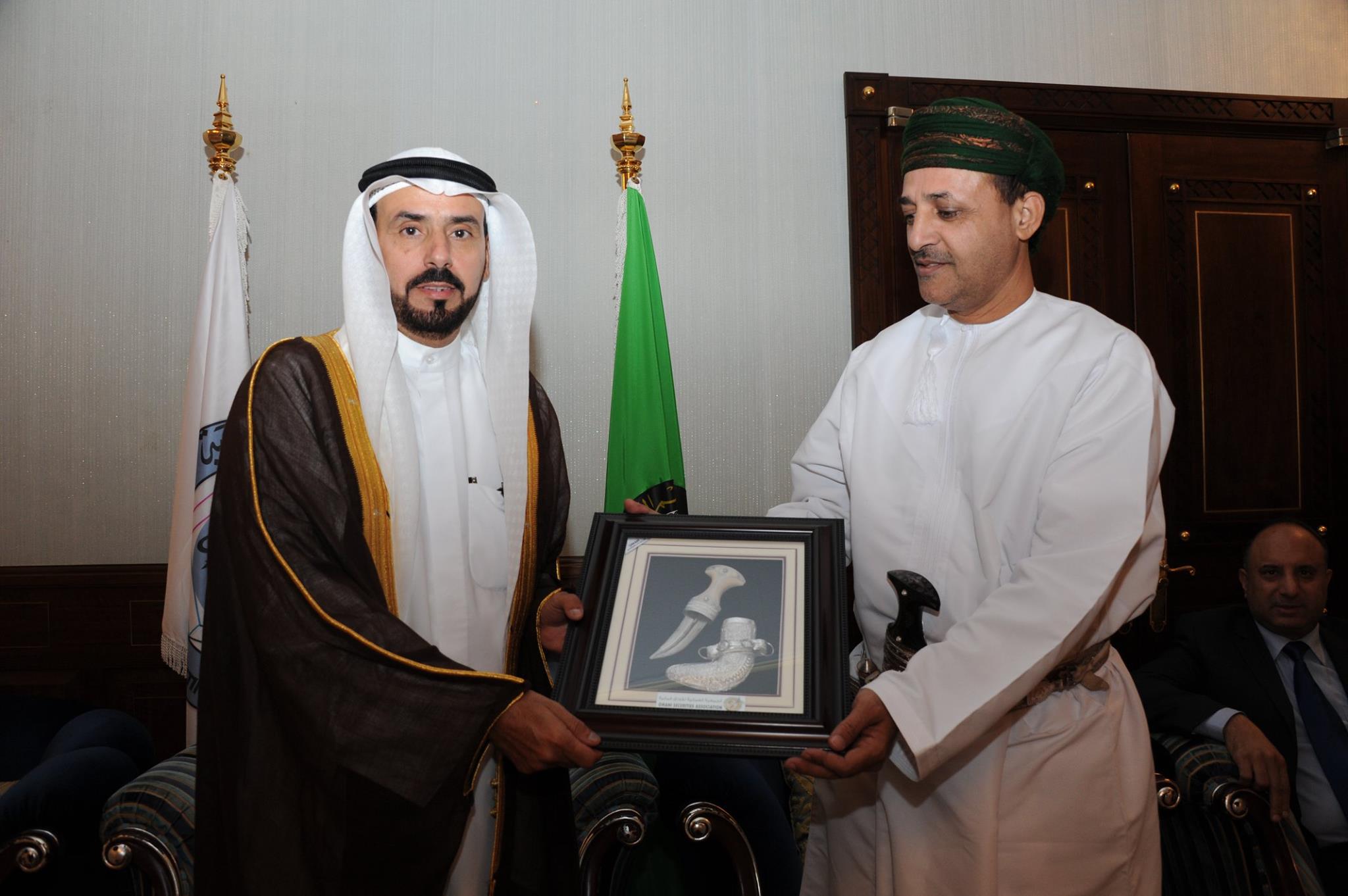 سلطنة عمان - مسقط / فندق قصر البستان يوم السبت الموافق 3 اكتوبر 2015م وقعت الجمعية العمانية للاوراق المالية وهيئة المحاسبة لدول مجلس التعاون لدول الخليج العربية إتفاقية تعاون مشتركة بهدف العمل في مجال الدورات التدريبية المهنية المتقدمة . ويأتي التوقيع على الاتفاقية متزامنا مع عقد الاجتماع الرابع لمجلس إدارة الهيئة في السلطنة ، وقد وقع الاتفاقية عن الجمعية رئيس مجلس إدارتها الفاضل /احمد بن سعيد كشوب ، فيما وقعها عن هيئة المحاسبة والمراجعة سعادة الدكتور/ فالح بن راشد العازمي نائب رئيس مجلس الادارة . وتضمن الغرض من توقيع مذكرة التفاهم الى وضع إطار عمل للتنسيق بين الجمعية وهيئة المحاسبة والمراجعة الخليجية لتحقيق اهداف برامج التدريب والتعليم المهني المستمر وتبادل الخبرات فيما يتعلق ببرامج التدريب والتعليم المهني المستمر وتبادل المعلومات والتعاون في في إقامة المؤتمرات والندوات ذات العلاقة بالمهنة ، والحرص على نشر المستجدات التي تطرأ على المهنة بين اعضاء الهيئة والجمعية سواء فيما يتعلق بالمعايير أو غيرها من الأمور المهنية ومواكبة الأحداث المالية والاقتصادية على المستوى الإقليمي والدولي وتحديد موقف المهنة تجاهها من خلال المؤتمرات واللقاءات العلمية . وقامت الجمعية الجمعية العمانية للاوراق المالية وهيئة المحاسبة لدول مجلس التعاون لدول الخليج العربية بتبادل الهدايا التذكارية على هامش توقيع الإتفاقية بين الطرفين . وحضر حفل التوقيع الرسمي عدد من اعضاء مجلس ادارة الجمعية العمانية للاوراق المالية وغرفة تجارة وصناعة عمان وعدد من اعضاء مجلس إدارة هيئة المحاسبة والمراجعة الخليجية وممثلين من دول مجلس التعاون الخليجي . وأكد الفاضل / احمد بن سعيد كشوب رئيس مجلس ادارة الجمعية إن هذه الاتفاقية تعد باكورة التعاون بين الجمعية وهيئة المحاسبة والمراجعة الخليجية بما يفتح مستقبلا وأفاقا واسعة للتعاون المؤسسي خاصة في مجالات تدريب المهنيين، وتقديم الخدمات التدريبية والبحثية والاستشارية المتقدمة لأبناء المجتمع في دول مجلس التعاون الخليجي بما يسهم في التنمية الوطنية الشاملة ويعود بالتالي بالخير على الوطن بكافة فئاته، وأضاف قائلاً بأن المهن في قطاع سوق رأس المال بحاجة الى المزيد من التطوير والتأهيل نظراً لحاجة الاقتصاد للتطوير المستمر في هذا المجال ، ويعد توقيع الاتفاقية مع هيئة المحاسبة والمراجعة الخليجية أضافة لسلسلة جهود جمعية الاوراق المالية في العمل نحو تطوير القطاع المالي نظراً للدور الكبير الذي تقوم به هذه المؤسسة لمهنة المحاسبة والمراجعة ولعلاقتها بالأسواق المالية , والتعاون معهم سيفتح آفاقاً جديدة لتطوير المهنة والارتقاء بها وتنمية الكوادر البشرية في دول مجلس التعاون خدمة لاقتصاداتها وتنمية لأسواقها المالية والمستثمرين فيها . من جهته قال سعادة الدكتور/ فالح بن راشد العازمي نائب رئيس مجلس إدارة هيئة المحاسبة والمراجعة الخليجية ان التوقيع على هذه الاتفاقية يبعث على الإعتزاز حقاً في التشارك مع مؤسسة مهنية تهتم لتنمية الكوادر المهنية ، مضيفاً بانه يؤمن إيماناً عميقاً بأهمية التدريب والتأهيل لخلق جيل جديد من القادة لتعمل المؤسستين سوياً في بناءً الرؤية المشتركة التي تجمعهما معاً لتزويد الجميع بتعليم وتدريب عالي الجودة. ويأتي توقيع هذه الإتفاقية في إطار التعاون بين الهيئة والهيئات والجمعيات الوطنية ومن أجل وضع إطار للعمل المشترك بين الهيئة والجهات ذات العلاقة لتبادل الخبرات والمعلومات ولما فيه مصلحة المهنة وتطوير الكوادر البشرية, من خلال برامج التدريب والتعليم المهني المستمر حيث أن رسالة الهيئة تتمثل بشكل أساسي بقيادة وتنظيم مهنة المحاسبة والمراجعة في دول مجلس التعاون لدول الخليج العربية وفقا لأفضل المعايير والممارسات الدولية ، كما تلتزم الهيئة بالعمل على توحيد مقومات المهنة في دول مجلس التعاون لدول الخليج العربية، ولها تعاون مع الهيئات وال